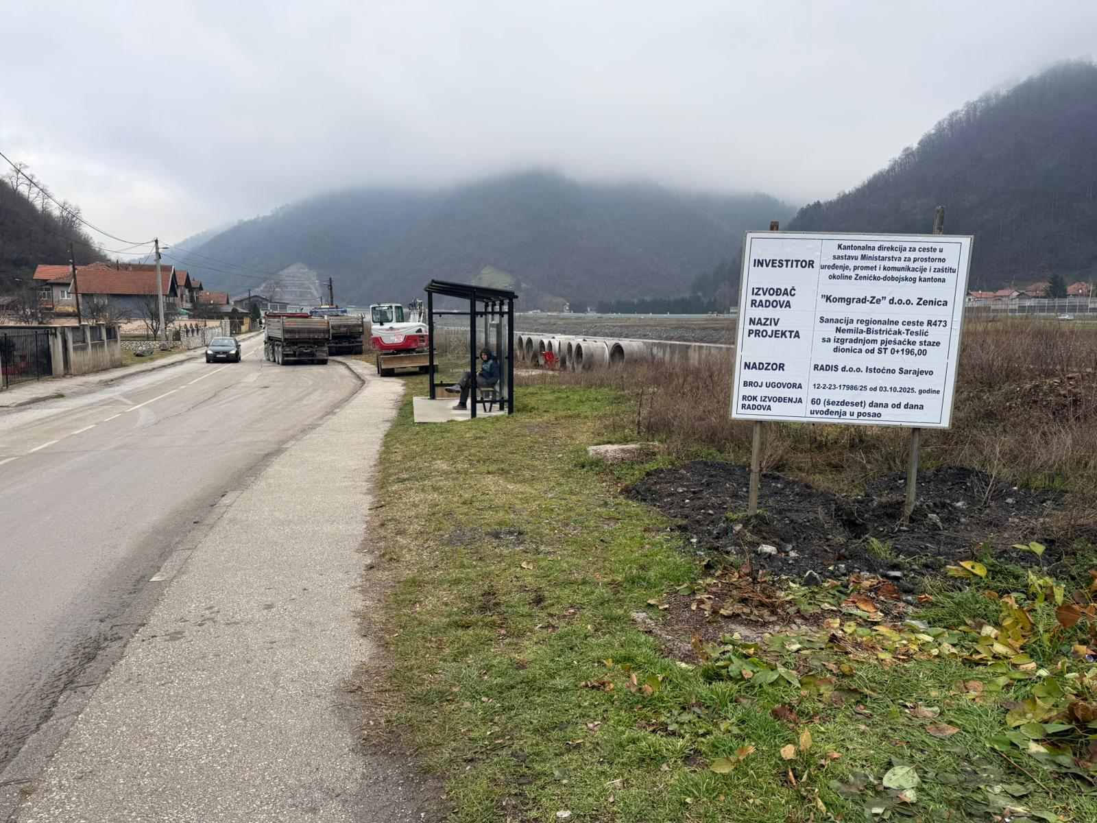 Na dionici regionalnog puta R473 u Nemili započeli su radovi na sanaciji ceste Nemila – Bistričak – Teslić, kao i izgradnji nove pješačke staze.